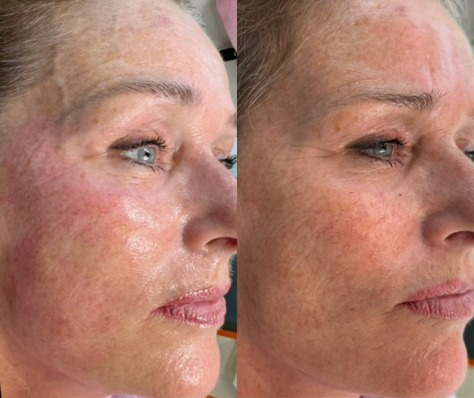 EFTER/FØR – en enkelt behandling (før billede til højre og efter til venstre)